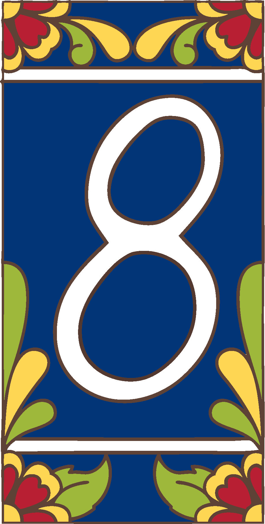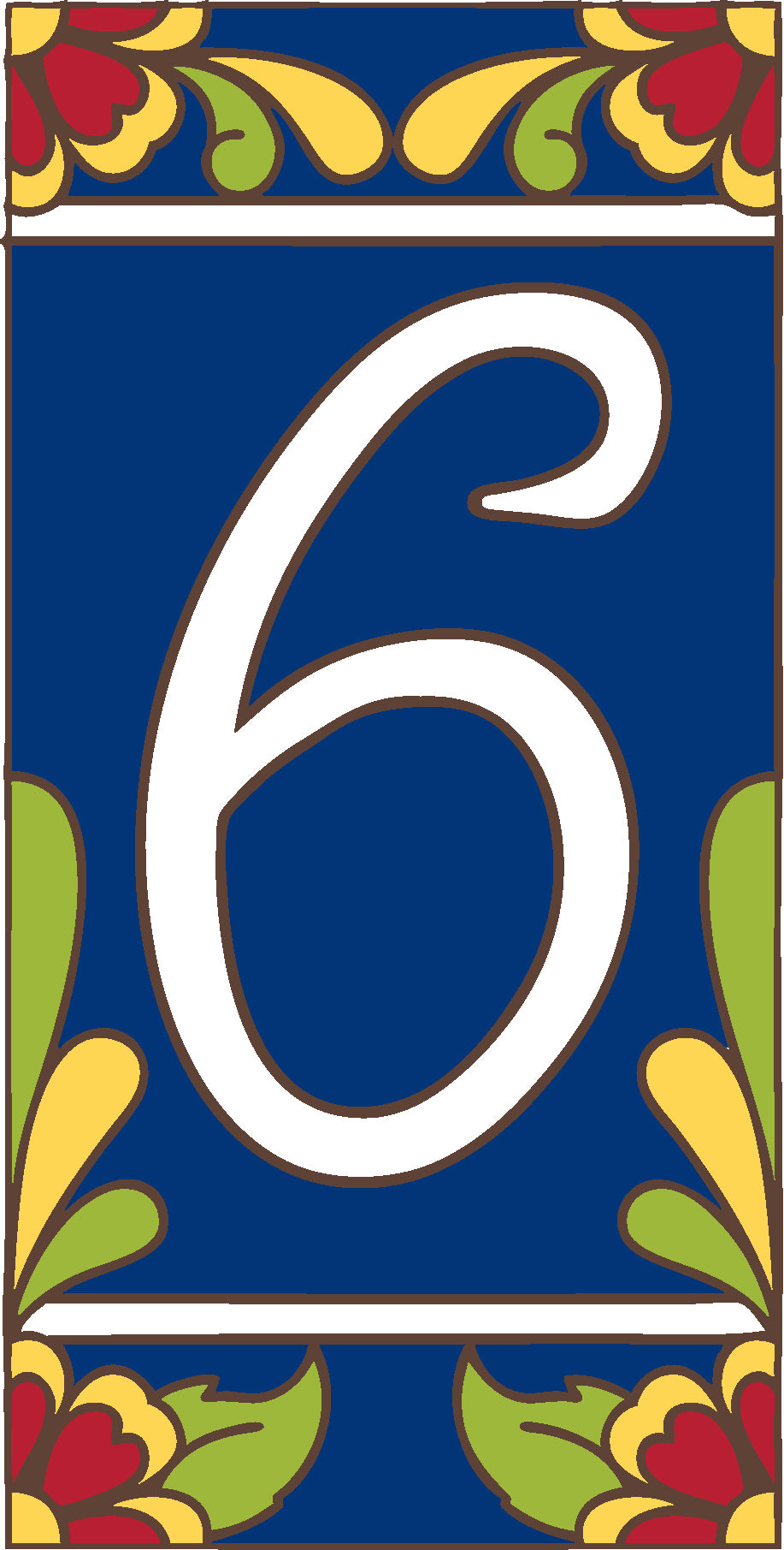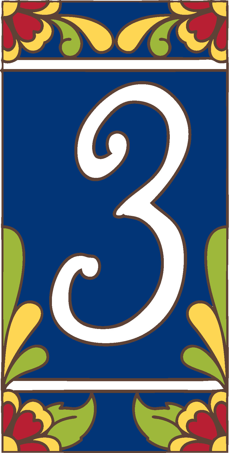 Our 3"x6" house number tiles are designed in house and hand glazed by skilled artisans in our Tucson, Arizona studio.