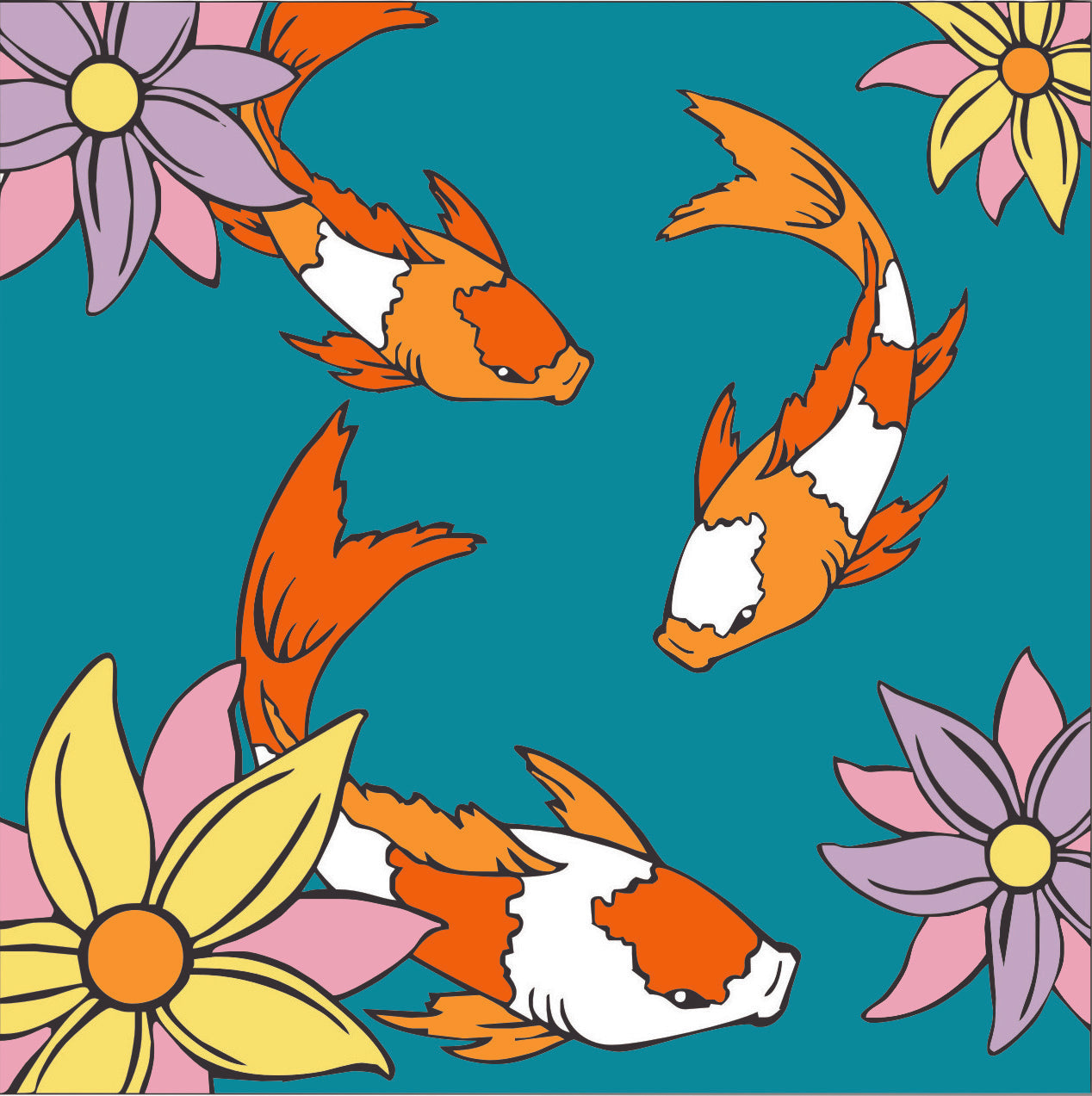 A colorful koi pond - 6"x6" hand-glazed ceramic tile.
