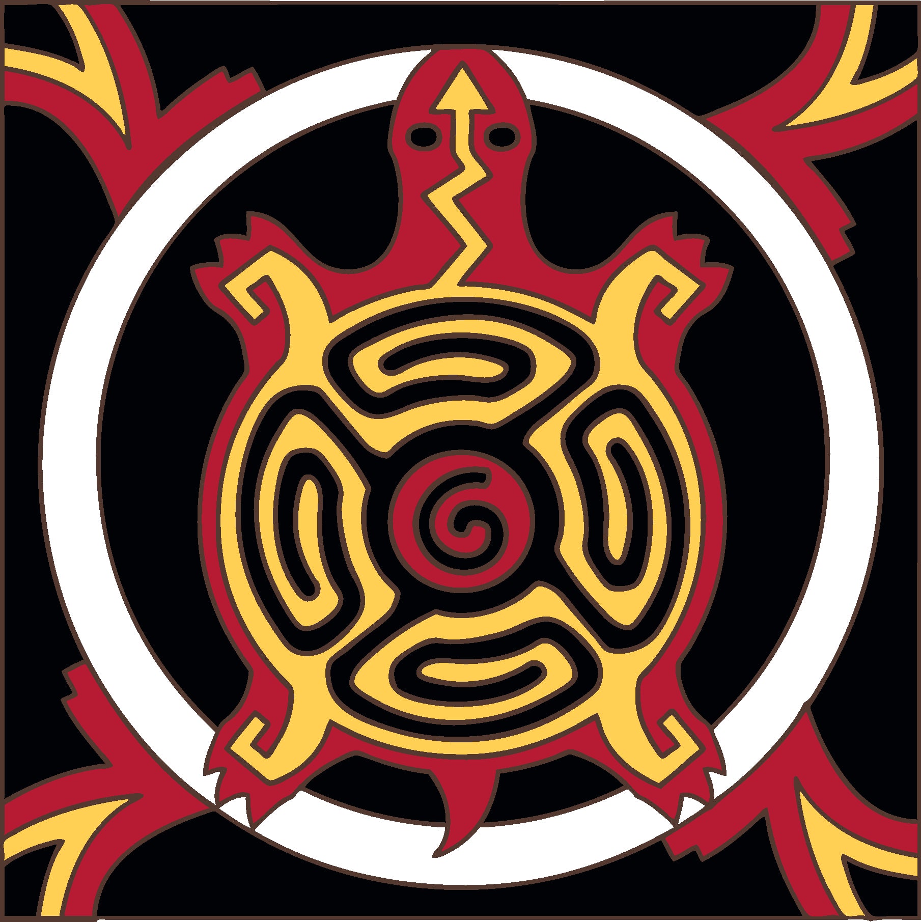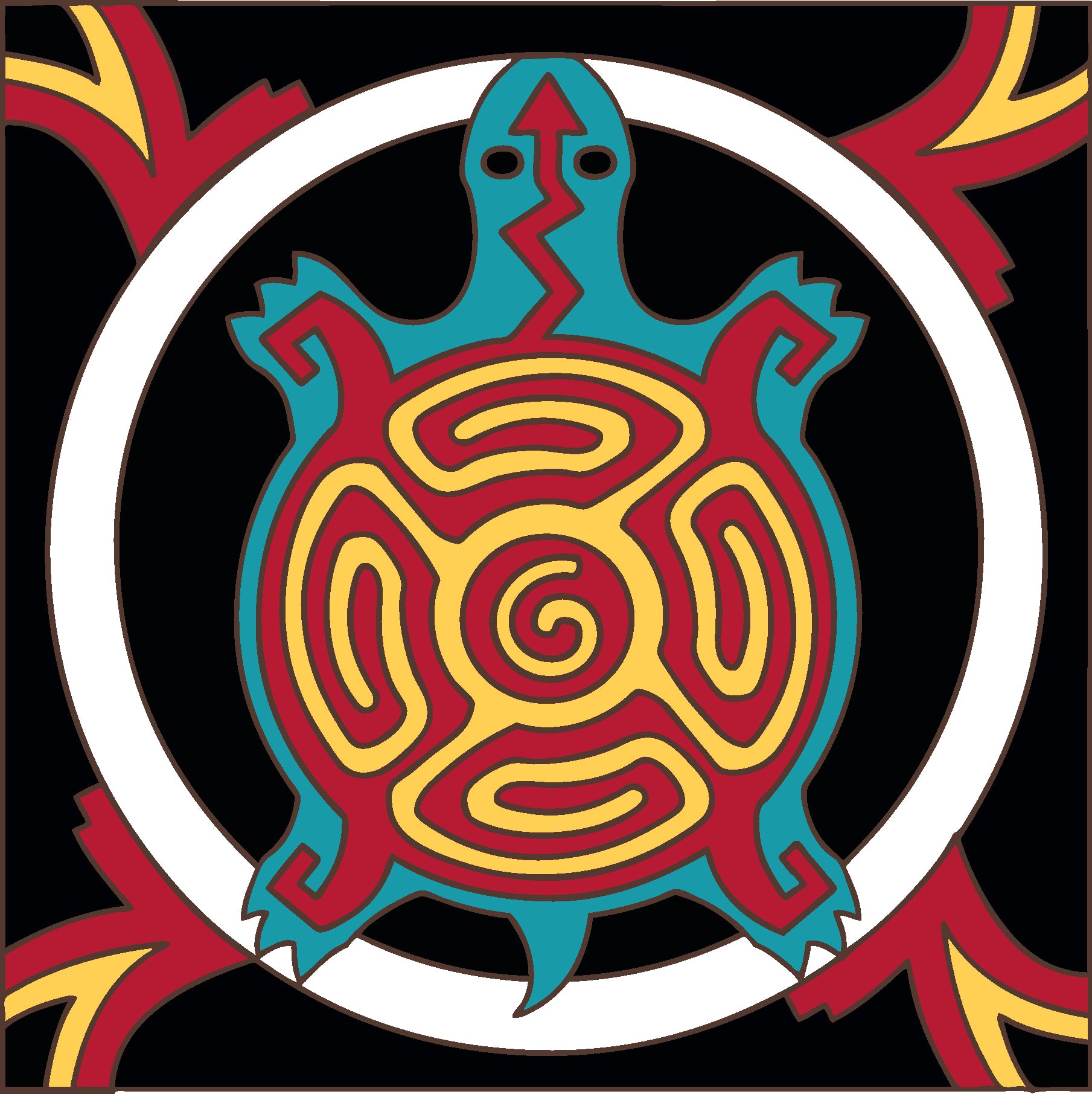 6"x6" hand glazed decorative tile with Native American Turtle design - a bold piece with red, black, yellow and turquoise accents, available in 3 color variations.